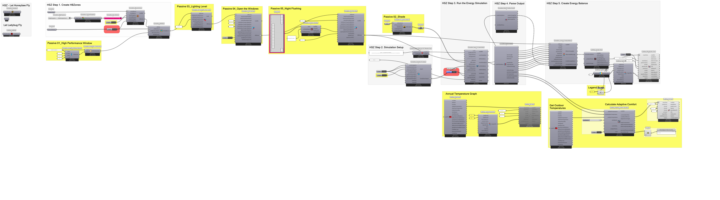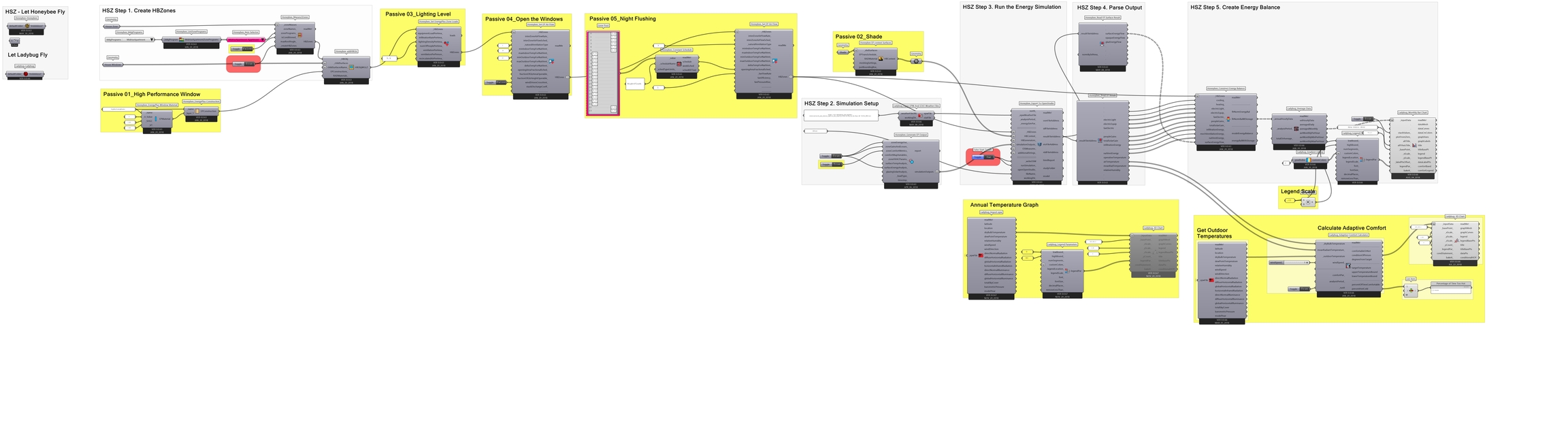 1.01 Here is an overview of all the modules we will add throughout the chapter on Passive Techniques. This is baseed directly upon the single-zone model we created before. The original elements appear in light grey groups below, and new elements appear in yellow.