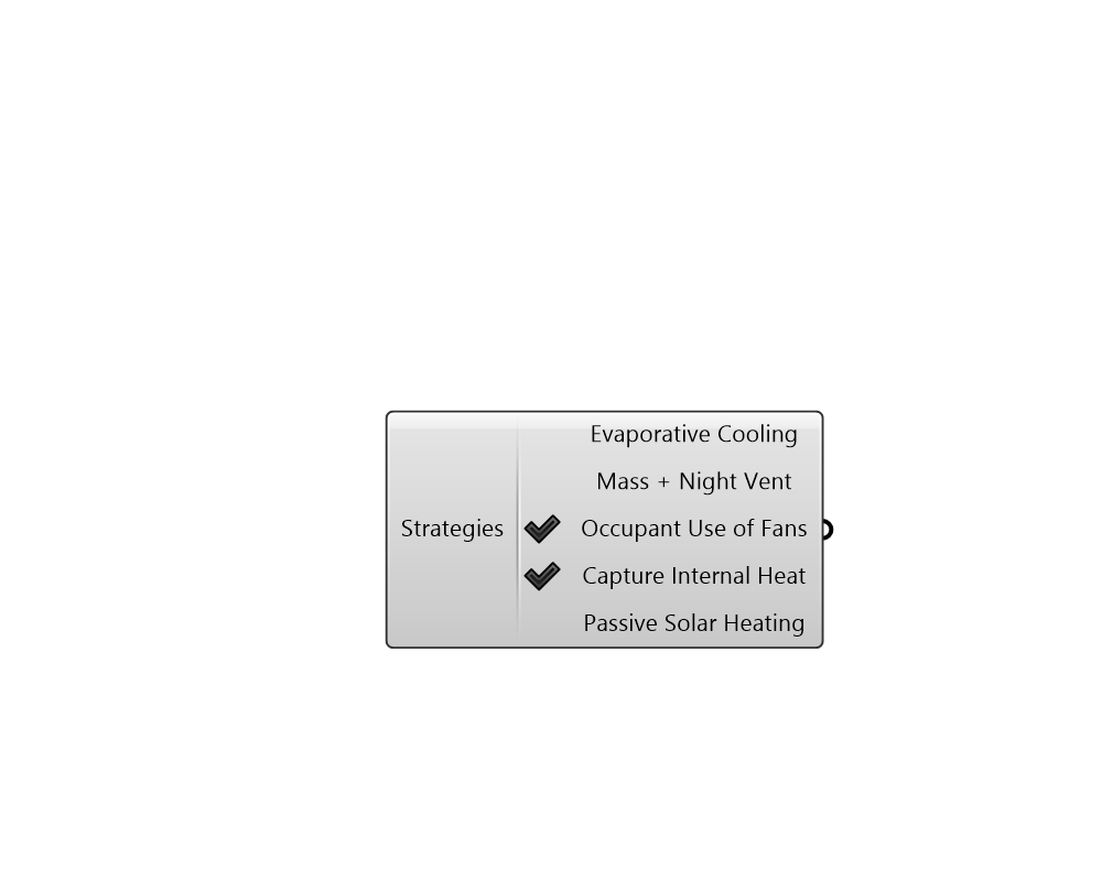 Provides a list of passive thermal strategies to be plugged into the "LB PMV Polygon" component.